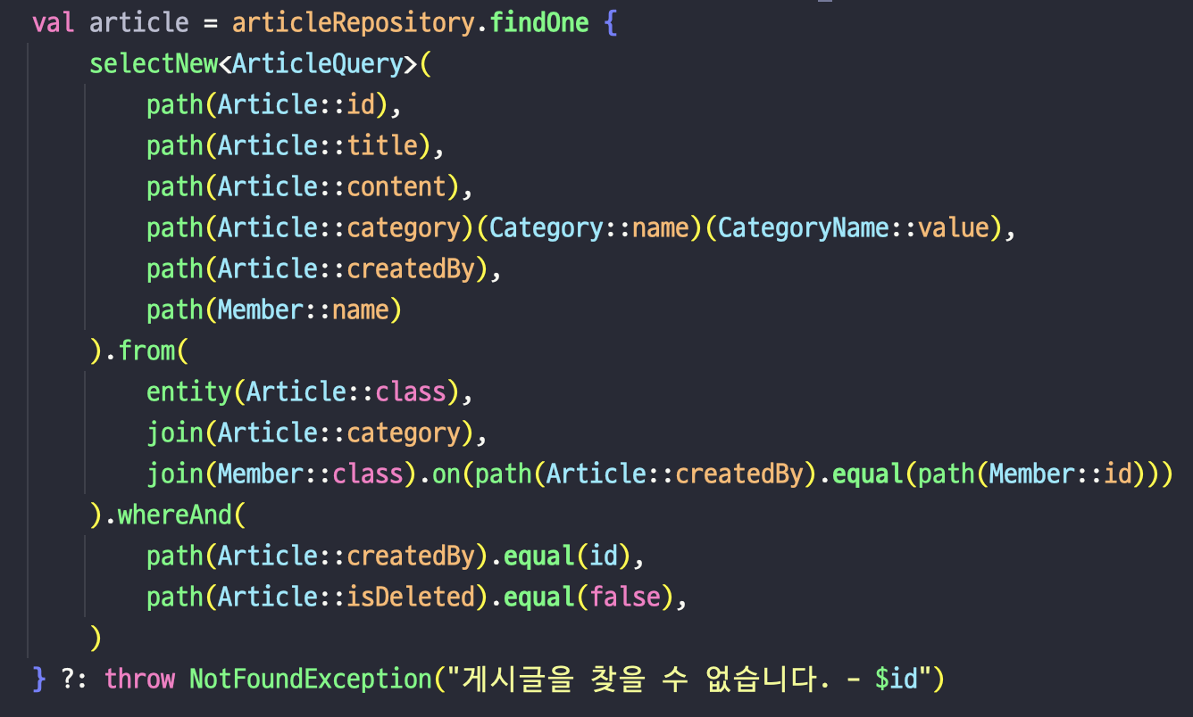 Querydsl은 JPA를 사용하는 자바 진영에서 쿼리 작성을 도와주는 라이브러리이다. 그러다보니 코틀린에서 Querydsl을 사용하면서 자바 스타일로 코딩하는 부분이 정말 아쉬웠다.